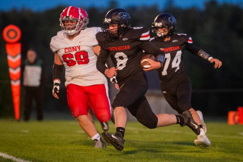 After Cony received to start the game, Skowhegan (3-0) took over six plays later on a Tyler Annis interception at the River Hawks’ own 6-yard line. The home team then mounted a long scoring drive, going 94 yards in 16 plays with Dunlap punching the ball in from 2 yards out with 1:20 left in the opening quarter.