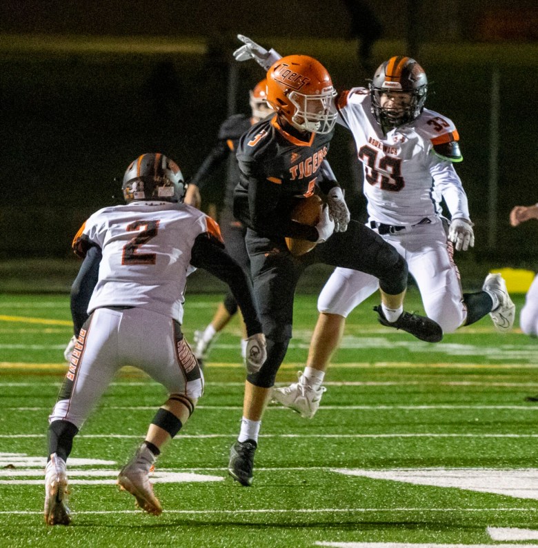 The Tigers (3-1) cruised to a 41-0 victory at Hoch Field. Senior quarterback Wyatt Chadwick led the way for the Tigers, completing 17 of 34 passes for 244 yards, while rushing for 92 yards on nine carries. He also scored four touchdowns, three rushing and one passing.