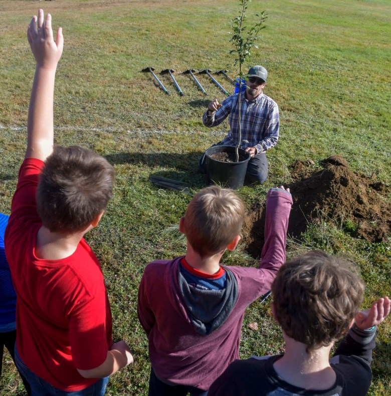 King and Ari Drouin, a school nurse, volunteered to oversee planting of the school’s orchard. King said he has a history with orchards from when he was a child in Pennsylvania.
