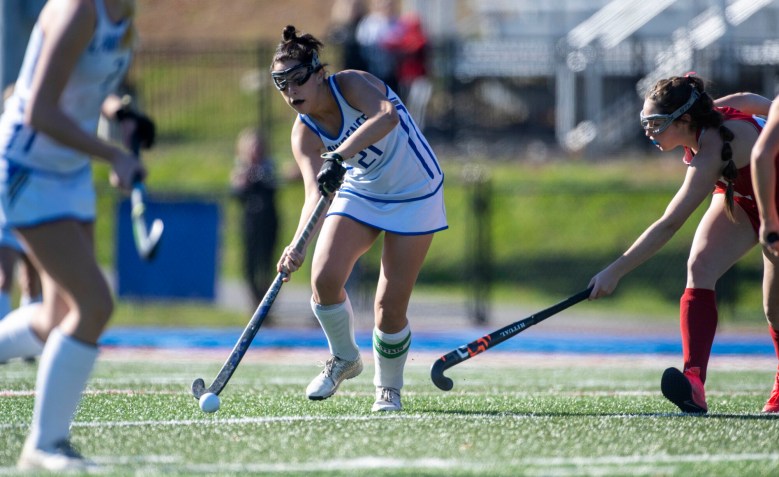 The Bulldogs got to work early, jumping out to a 3-1 lead in the first quarter, with the first goals of the game from both Higgins and Stewart, as well as a score off a penalty stroke from Bouchard. Stewart added her second goal of the game early in the second quarter, then assisted Niles with her score just two minutes later. Lawrence entered halftime with a 2-1 lead.