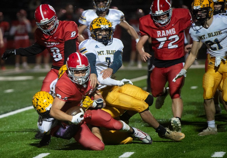 “Our defense is sort of bend but don’t break,” Lippert added. “(Mt. Blue) moved a little bit against us. (Mt. Blue’s Isaac Wrigley) is a pretty good wide receiver, we had a good corner on him. He made the tough catches in traffic. But when we got in the red zone, for the most part, we were sort of able to bow out back and keep them out of (the end zone).”