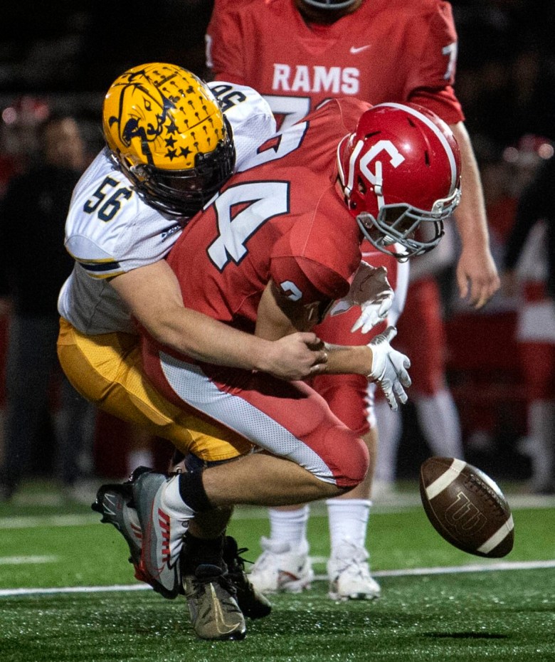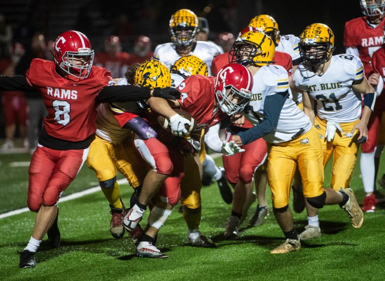 Up 19-7 at halftime, Napolitano helped ice the game in the second half for Cony, scoring on two touchdown runs and connecting with wide receiver Kam Douin on a 22-yard touchdown pass. Napolitano also had a 20-yard touchdown run in the first quarter for the Rams.
