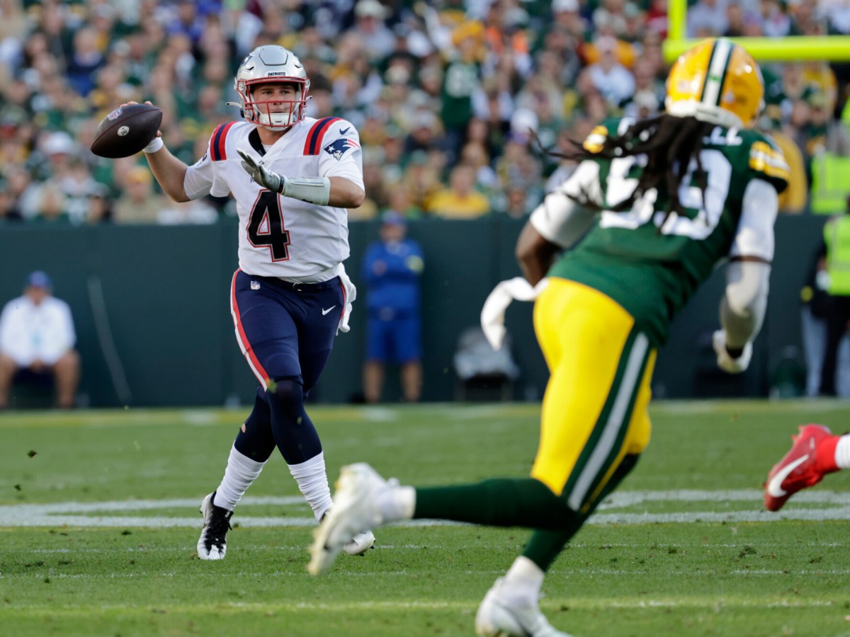 Third-string quarterback Bailey Zappe was forced into action against Green Bay and kept New England in the game.