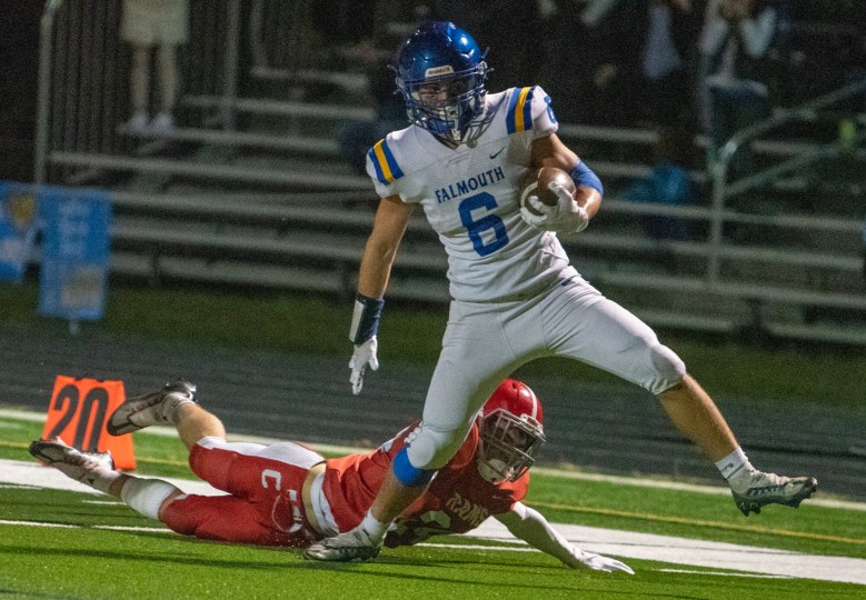 Throwing mostly screens against Falmouth’s zone defense, Napolitano finished 12-for-17 passing with 149 yards and two TDs, but was only 2-for-4 for 10 yards in the second half as Falmouth played keep-away. He also ran eight times for 56 yards and a score.
