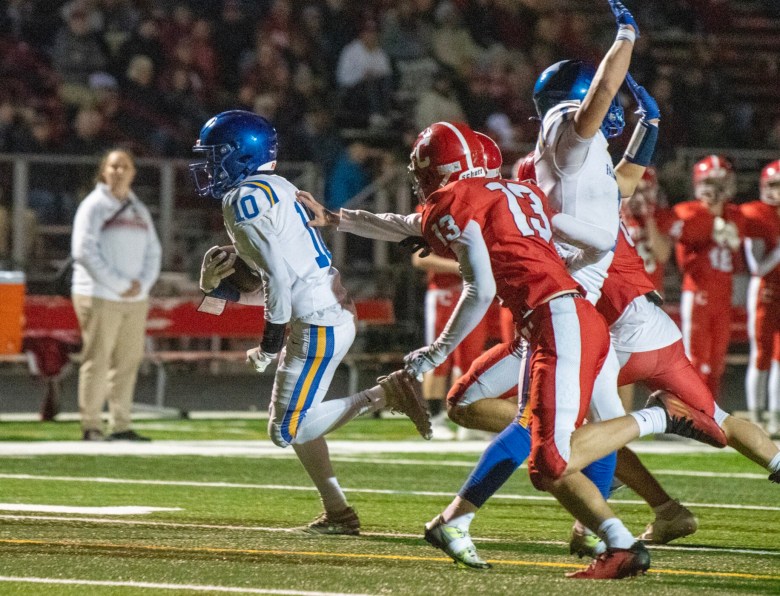The Navigators’ two-headed attack of quarterback Finn Caxton-Smith and running back Indi Backman made gains big and small all night. Caxton-Smith, a track star who holds the school record in the 100 meters, ran for 204 yards and three touchdowns on 18 carries, and Backman added 167 yards and a score on 23 carries.