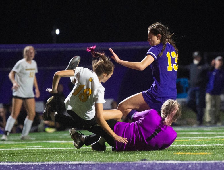 With 17 minutes left in the first half, Bucksport struck first as Addison Goss, left unmarked down the left flank, scored. The Golden Bucks then doubled the lead with 11:20 to go as Alyx Frazell, who caused problems for South No. 2 Maranacook (16-1-1) down the right side all night, bundled in a loose ball from close range.