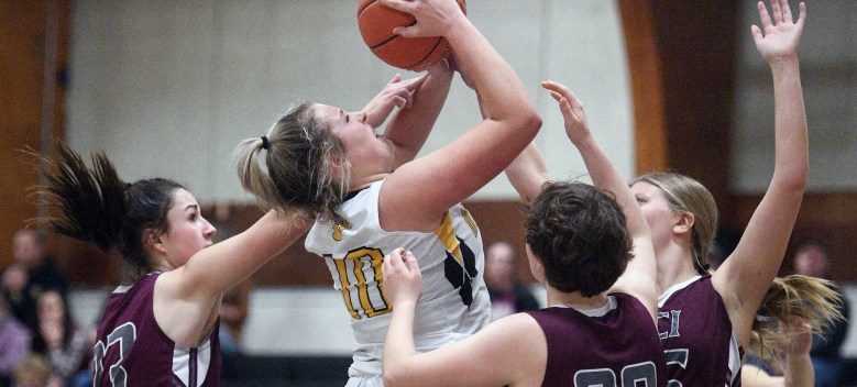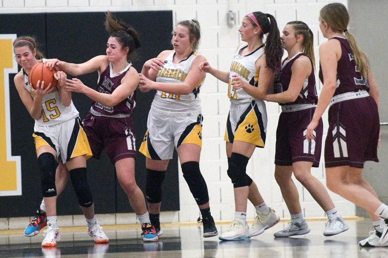The Black Bears’ ball hawks, including Kaleigh Kubicki, Natalie Mohlar, Jordan Carr and Eliza Pattershall, frustrated MCI’s backcourt all night as they intercepted passes and turned them into easy points. Seven of Maranacook’s first-quarter points came off turnovers.