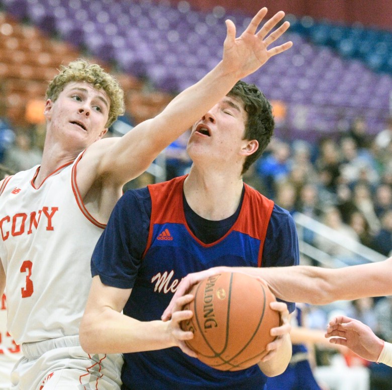 Cony needed everything in its arsenal to overcome Messalonskee’s Smith, who at 6-9 makes a basketball resemble a softball in his hands when taking a pass or sliding the ball into the hoop. He had game highs of 26 points and 13 rebounds. While Cony couldn’t stop Smith completely, the Rams did hold him to only four points in the pivotal third quarter.