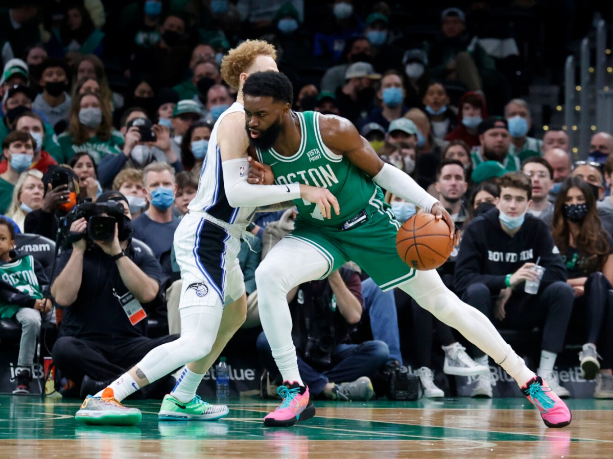 Jaylen Brown sets a career high and Boston erases a late 14-point deficit as it beats Orlando in overtime, 116-111.