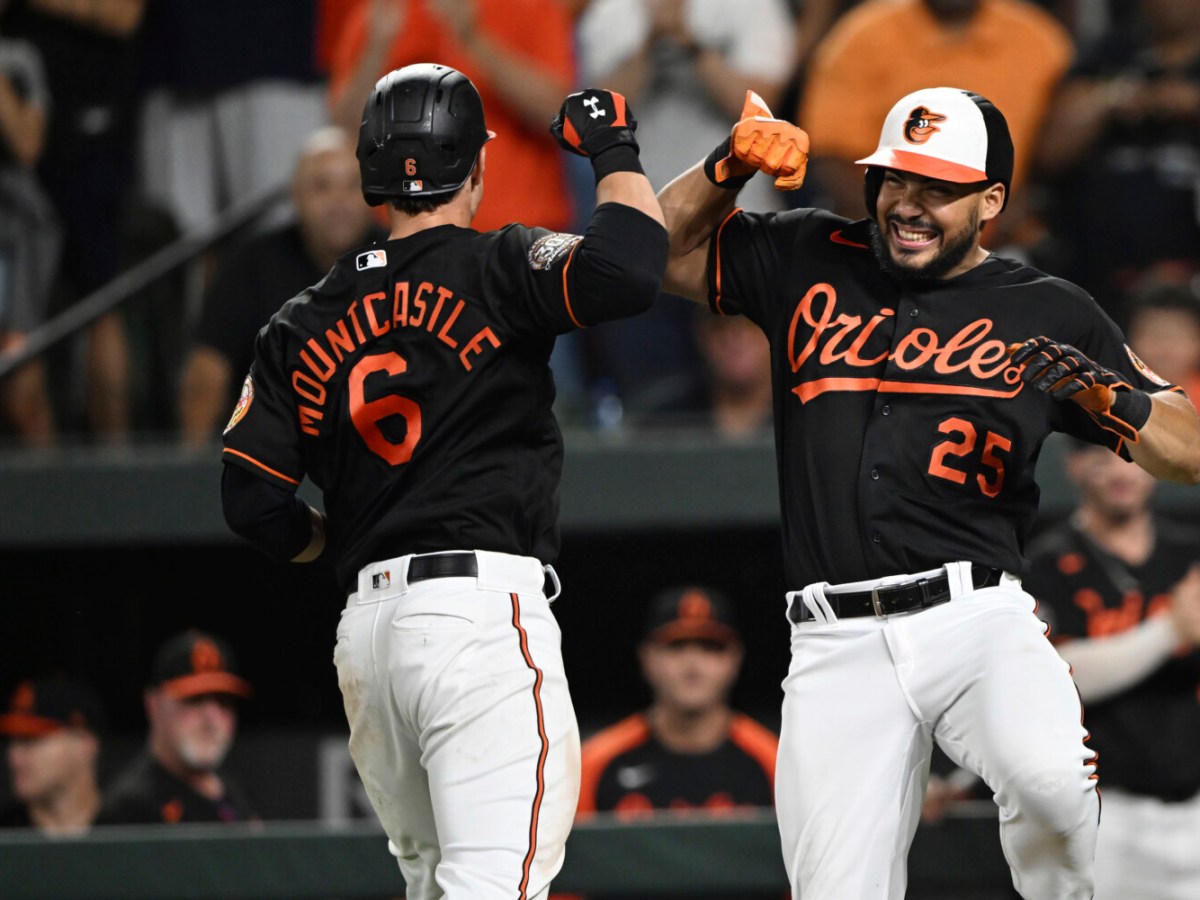 Baltimore belts five home runs and finishes with 18 hits as Boston loses more ground in the wild-card race.