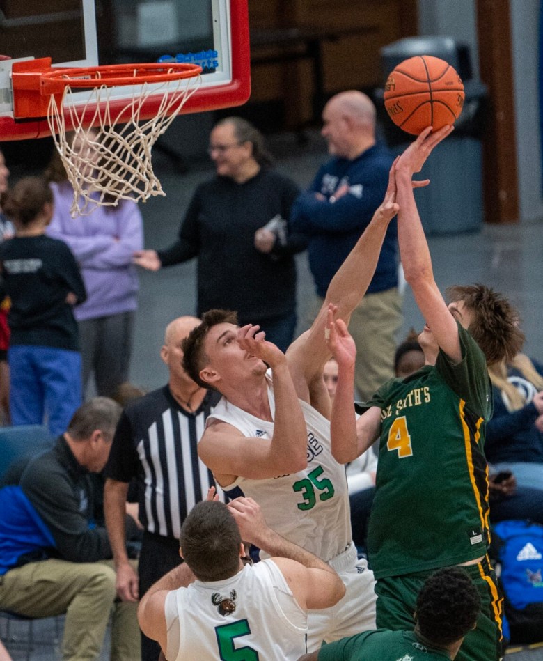 Sparked by their strongest first half of the season, the Moose cruised to an 80-48 win over Paul Smith’s College in a Yankee Small College Conference game at the Augusta Civic Center. It was the first game of a doubleheader between the two schools. Later in the evening, an Anthony Frasier layup with less than a second to play gave the Paul Smith’s men an 89-88 win over UMA.