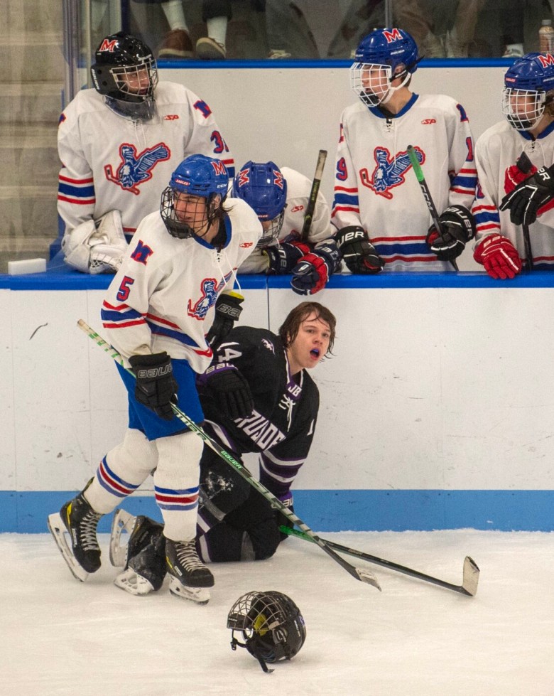 Messalonskee (9-1) dominated the first period, controlling the puck in the John Bapst zone for all but a brief stretch and nearly scoring a shorthanded goal on a shot that hit the post with four minutes left. The period would end scoreless, though, as the Crusaders’ Gavin Bartlett made 12 saves to keep the Eagles off the board.