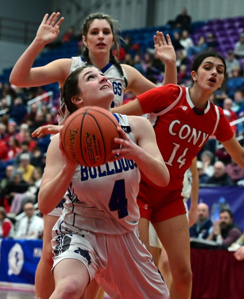 With Abby Morrill and Sage Cunningham beginning to penetrate, and a barrage of Lawrence fouls sending the Rams to the line, No. 3 Cony (15-5) got its offense going in the second quarter. Yet the Bulldogs, led by three 3-pointers from Bouchard, never let Cony get closer than six points and led 29-19 at the half.