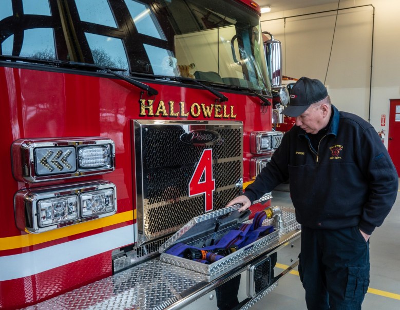 Pierce Manufacturing in January paid for three members of the Hallowell Fire Department to travel to its Bradenton, Florida, factory and look at the new truck. According to Hallowell Fire Chief James Owens, the vehicle has several advantages compared to the old one, including a 1,250-gallon water tank compared to the old truck’s 750-gallon tank. The pump can produce 1,500 gallons per minute as opposed to the old vehicle’s 1,250 gallons per minute. The new truck can seat five compared to three and features self-contained breathing air tanks built into the seats, which Owens said can save firefighters time by enabling them to get hooked up to the protective devices on their way to a scene.