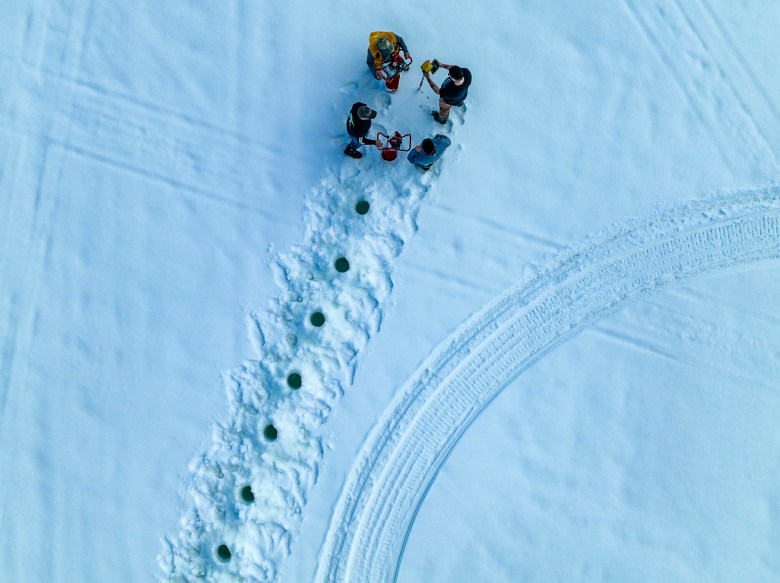 Northern Maine Ice Busters had to cut through ice nearly 30 inches thick on a path painstakingly measured by survey crews to create a perfect circle measuring nearly six football fields across.