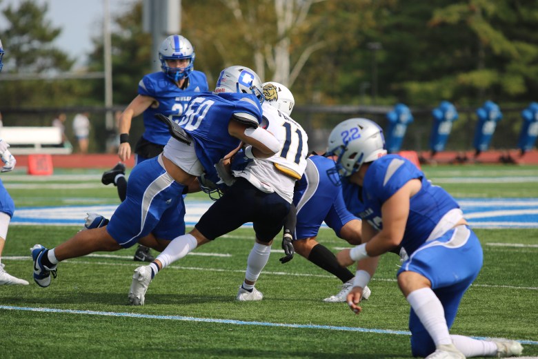 Those adjustments turned a close game into a dismantling. After a 1-yard touchdown run by Tyler DiNapoli early in the quarter, Spencer Fetter hit DiNapoli and Sean Clapp for touchdown passes of 59 and 49 yards, respectively. Colby then took a safety on a punt out the back of the end zone, and Fetter hit Clapp for a 30-yard score to make it 39-7.