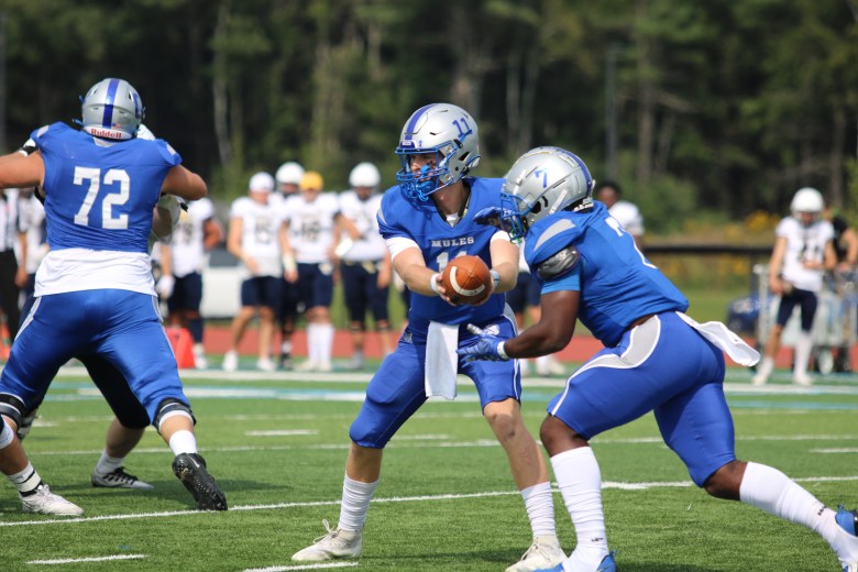 Shortly following Saturday’s home opener, the Colby College football team’s fifth-year head coach looked visibly distraught as he sat alone in the Mules’ team tent outside Harold Alfond Stadium. After a terrific start to the game, the Mules surrendered 48 straight points to reigning NESCAC champ Trinity in a 48-7 defeat.