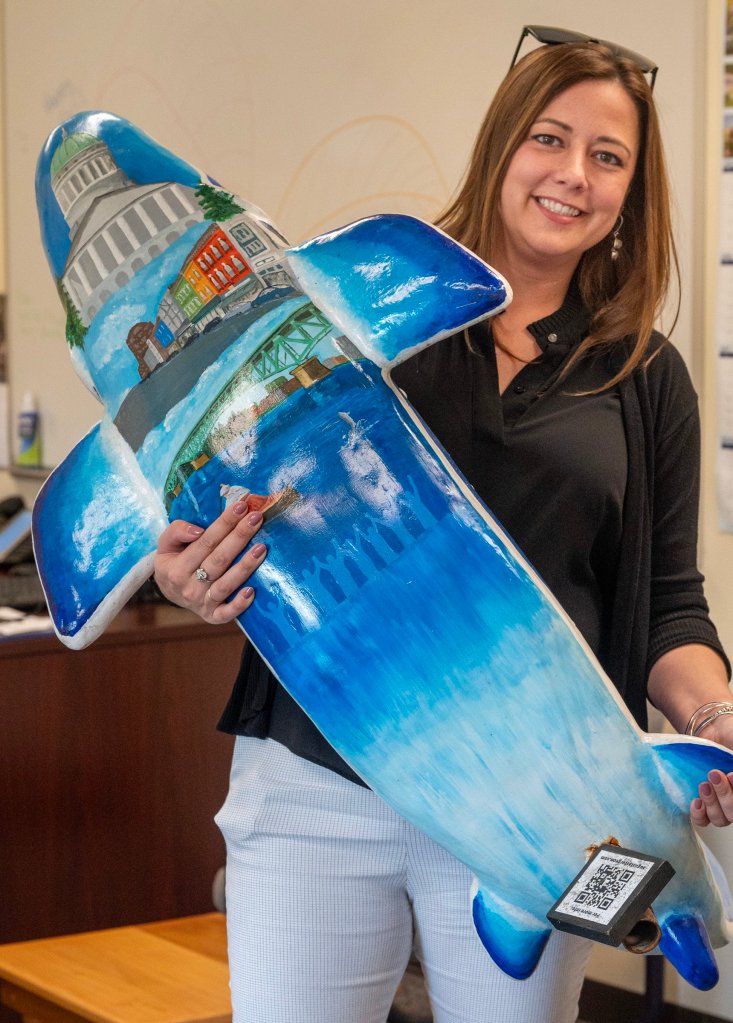 The gifts are expected to include a set of moose antlers, reproductions of street signs from Augusta’s most prominent streets and one of the fiberglass sturgeons from an Augusta art project in which replicas of the large fish — which can sometimes be seen leaping in the Kennebec River in the city — were placed throughout the downtown area.
