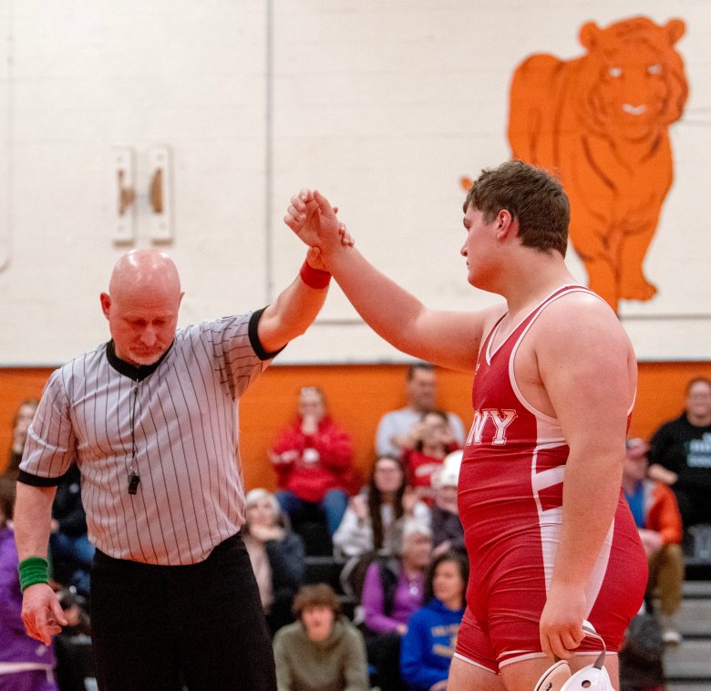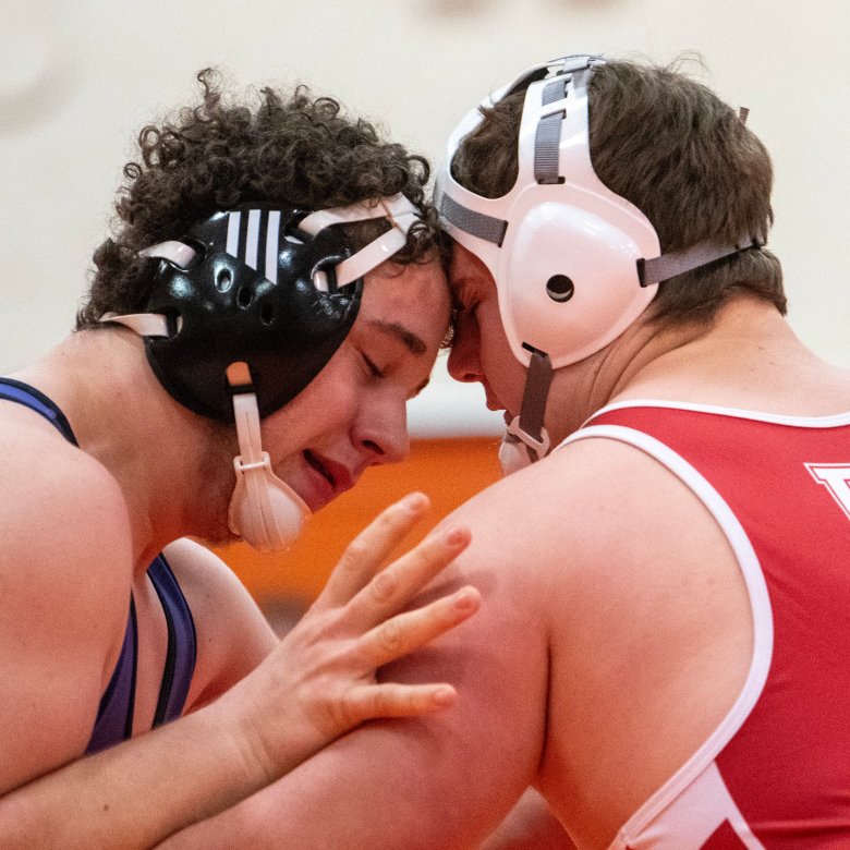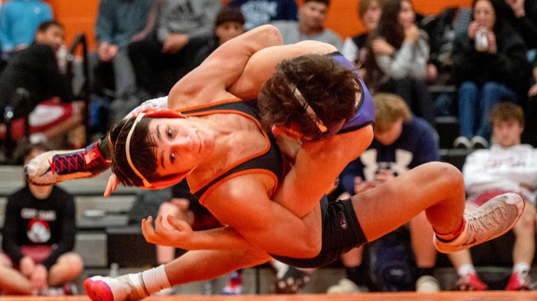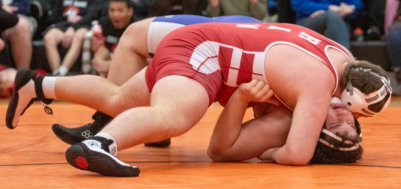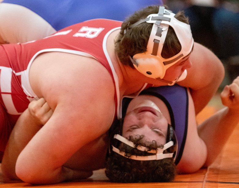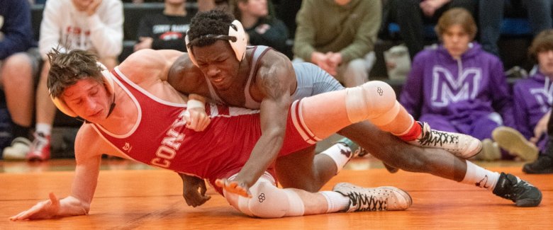 In the far corner of the gym sat the Cony wrestling team. And in the front row, wearing sweatpants, a long-sleeve black T-shirt and wireless headphones, sat the top heavyweight wrestler in Maine.