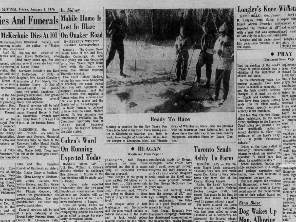 Jan. 2, 1976: Fairfield woman in Portland for burn treatment after kerosene explosion, fires in both Sidney and Etna, and U.S. Rep. William S. Cohen expected to announce today if he’s running against Sen. Edmund Muskie