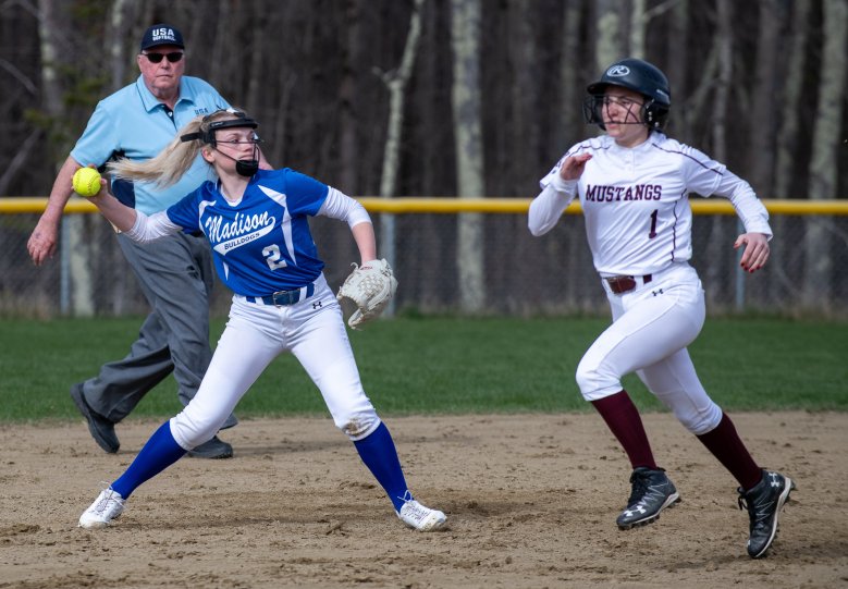 Control was an issue for Parsons in the top of the first inning, when she walked two of the first three batters she faced. Hope Nadeau’s bunt attempt plated one run for the Bulldogs (2-3), followed by an Emma Anton bunt that loaded the bases. Parsons walked Marina Gilman, which brought home Madison’s second run.