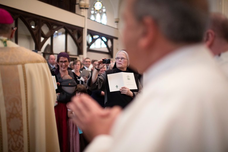 “It’s glorious to be here, especially with our kids,” she said. Ruggieri “is probably going to be confirming our kids and his episcopacy is going to shape the diocese my children grow up in. It’s a historic day.”