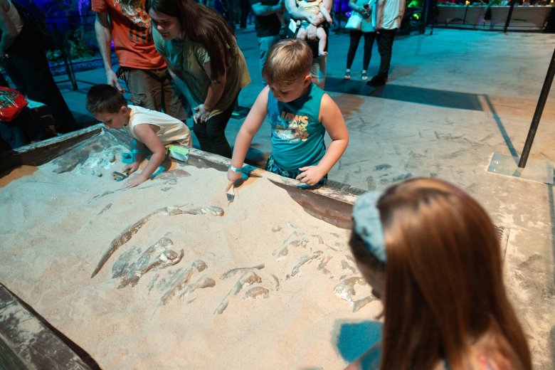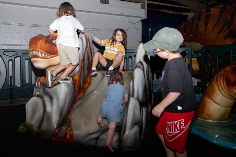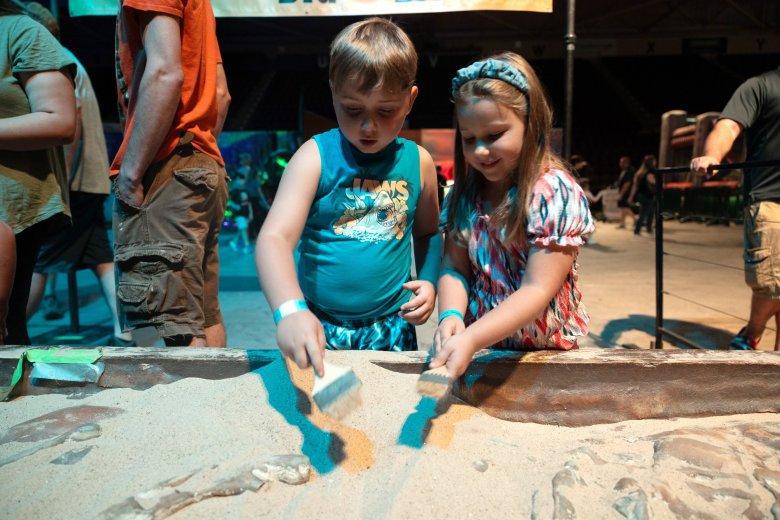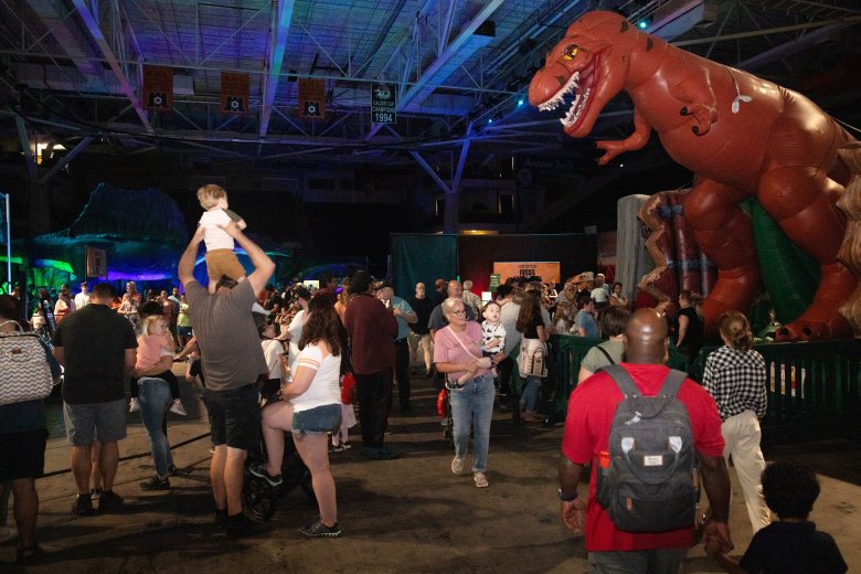 The touring dinosaur-themed expo features life-sized animatronics, dinosaur bouncy houses, a fossil dig and interactive “raptor training” shows.