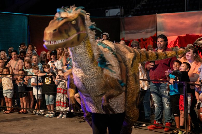 “He names all of them, he’s very excited,” Britany VanKeuren, of New Hampshire, said while watching her 4-year-old son, DJ Shattuck, interact with the dinosaurs. “He’s obsessed with dinosaurs.”