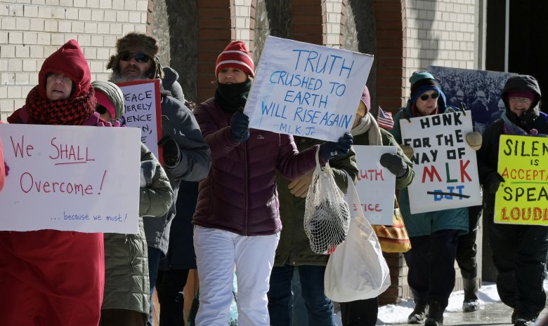 WATERVILLE — It was cold Monday morning, with temperatures well below freezing. But about 25 people braved the cold for a march to deliver clothes to the homeless in honor of Martin Luther King Jr. Day.