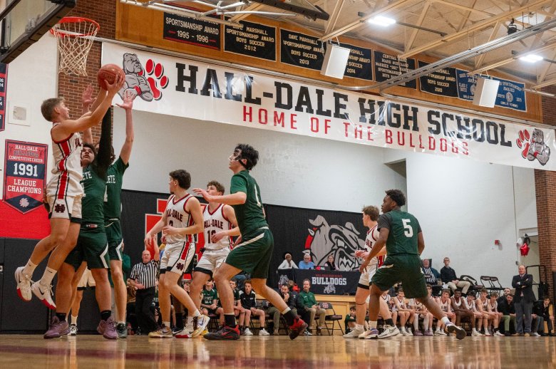 Keegan Cary led Hall-Dale (12-5) with 21 points, while Karter Eldridge scored 15 and Jaxon Olsen added 14 points.