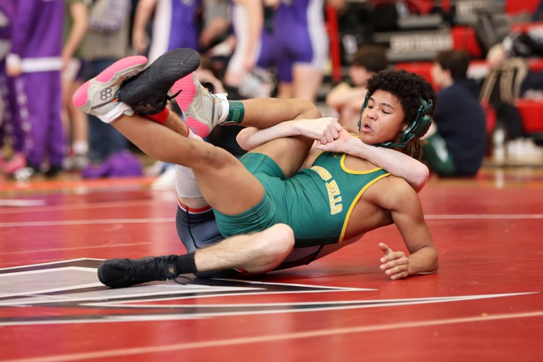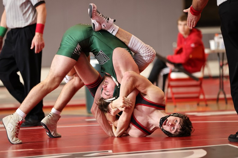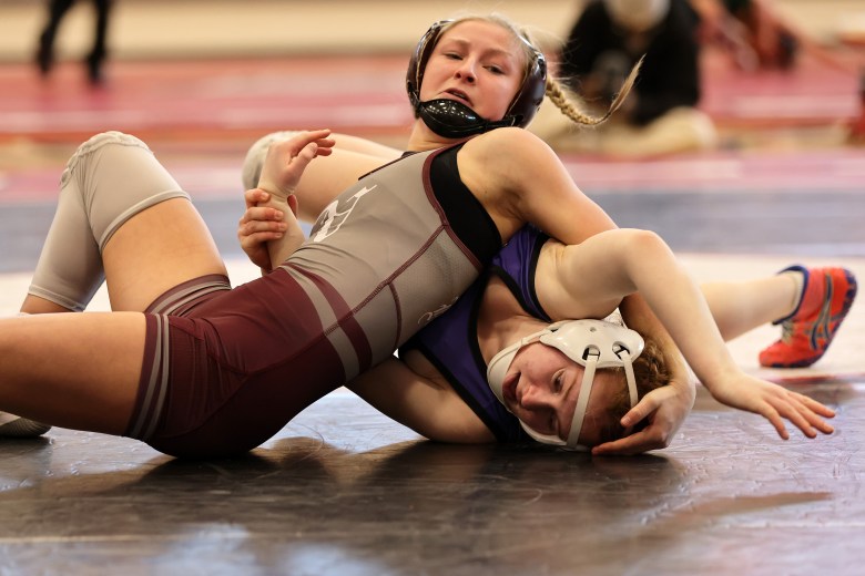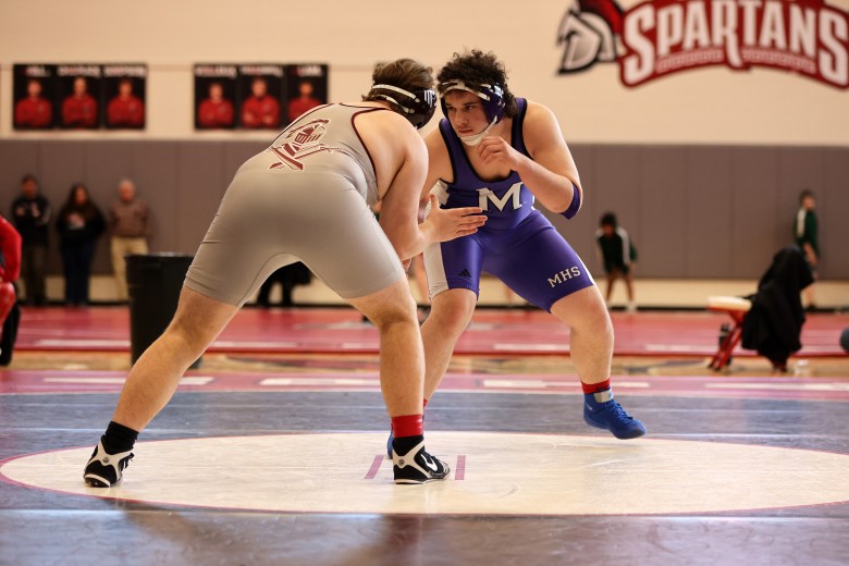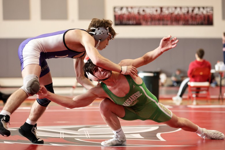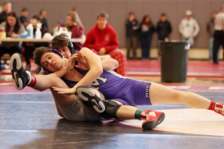 One of the highlights of the day was Jonathan Martinez getting a pin win for Wells in the 285-pound class. A senior, Martinez has had infrequent varsity matches, backing up 2023 state champion Nate Malloy. Wells coach Scott Lewia said Malloy was out of action this week for a discipline issue and could be back for next week’s regional.