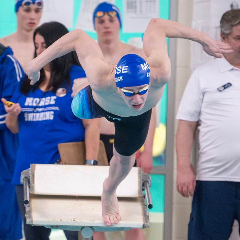 “We love to go hard in the first event,” first-year Morse coach Spencer Hallowell said. “It sets the tone for the rest of the meet. Positive attitude, positive vibes, and then everyone just swims fast after that.”
