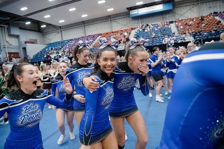 From their coach to their cheerleaders, the Blue Devils agreed their routine was nearly flawless. Aubrey Wood, a senior, said the team felt “electric” as it left the mats, and coach Matt Hanley called the performance the best of Lewiston’s season.