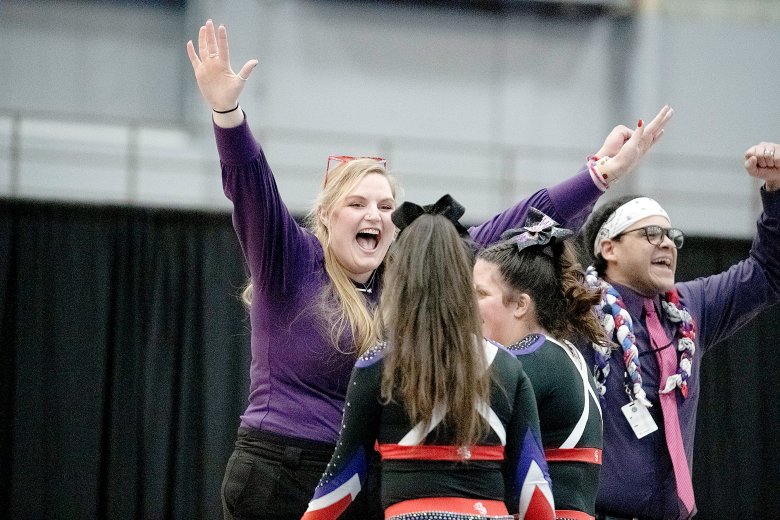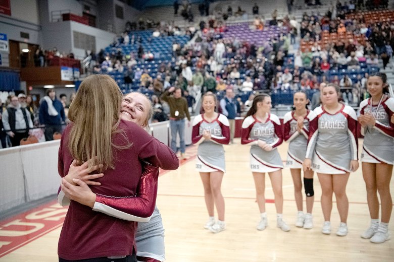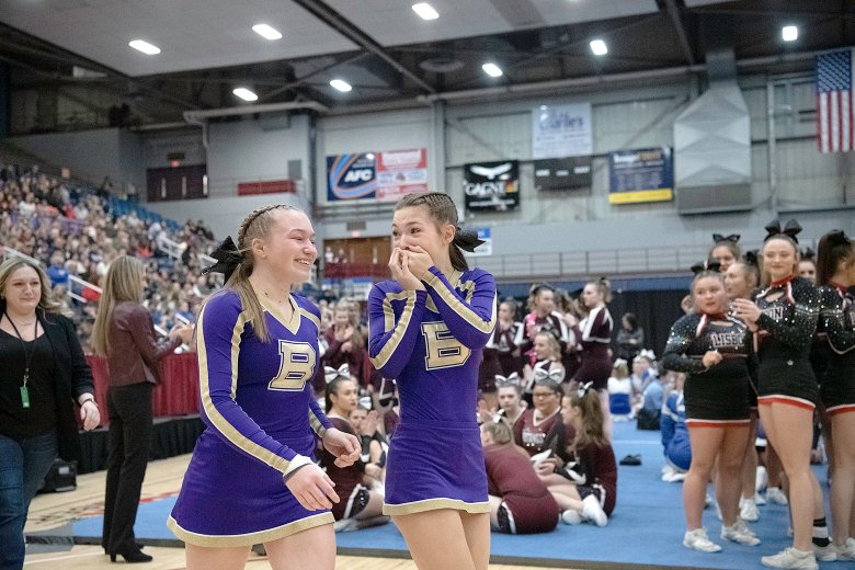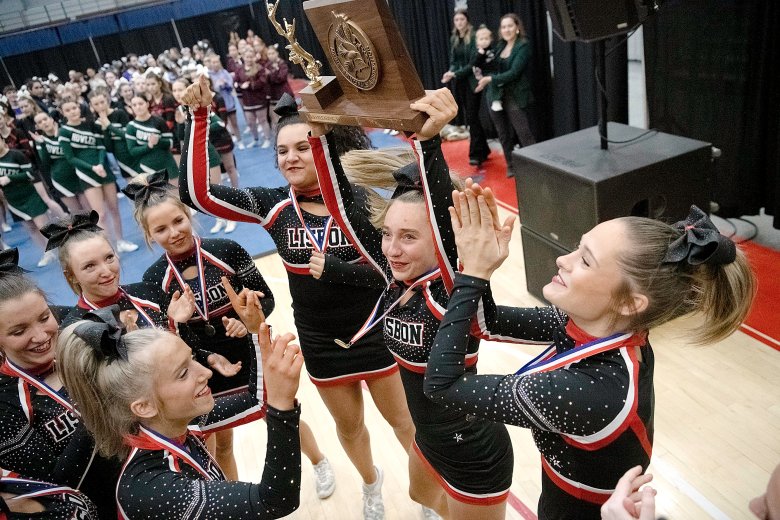 Lisbon’s Nevaeh Fortin was confident her team had done what it needed to do following its high-energy performance, the last of the 16 teams in Class C. Coach Nicole Adams added that the Greyhounds’ tumbling was well-executed and that the team’s stunts were by far its best of the season.