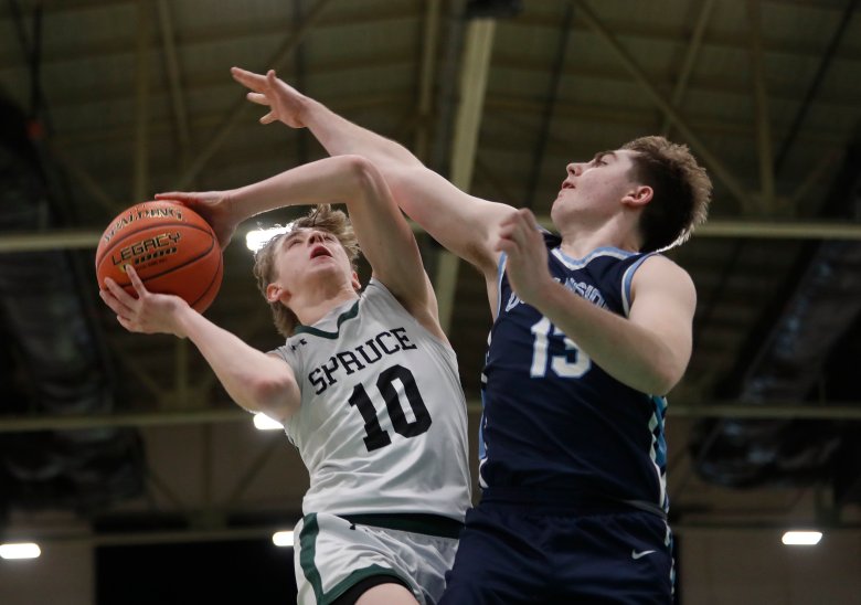 • “Those kickout corner 3s were killing us all night,” Spruce Mountain coach Scott Bessey said. “It was like, do we go down with our matchup zone? Or do we switch it up? We switched it up and went straight-up man-to-man, and I think that was more effective. It eliminated corner 3s and it bought us some time to make a comeback.”