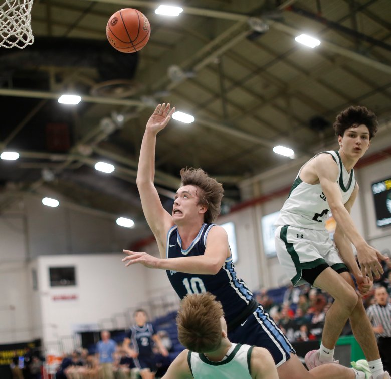 That’s when the Phoenix started their rally. Dougher hit a pair of free throws, Austin Armandi had a layup, and Kelvey went to the free-throw line with a chance to put Spruce Mountain ahead. He made the first but missed the second, but Dougher grabbed the rebound and quickly put it in for a 55-53 lead.