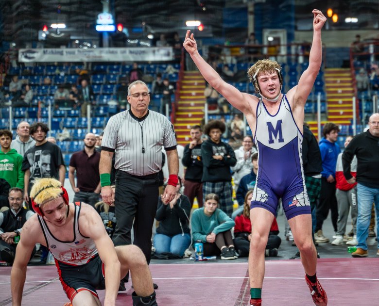 Dustin said being a previous champion brings a different challenge. He won his third crown with a 7-1 decision in a tough final against Edward Little’s Evan Madigan.