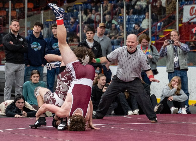 Ouellette downplayed his individual triumph, a 21-5 technical fall against Gardiner’s Kyle Doody. “It’s more of a team thing. I just wrestle,” Ouellette said. “I’ve been doing this since I was young. It’s for fun now. It’s cooler for the team. It’s definitely a cherry on top, for sure, but I’m more happy for the team.”