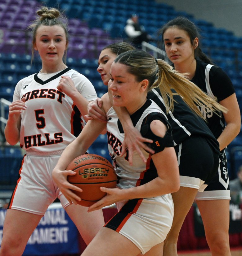 • Second-seeded Forest Hills (14-6) stormed back in the second quarter. Morgan Petrucci was the only player to score in the first quarter for the Tigers, but her teammates contributed in the second. Five players scored, and Forest Hills cut the lead to 27-24.