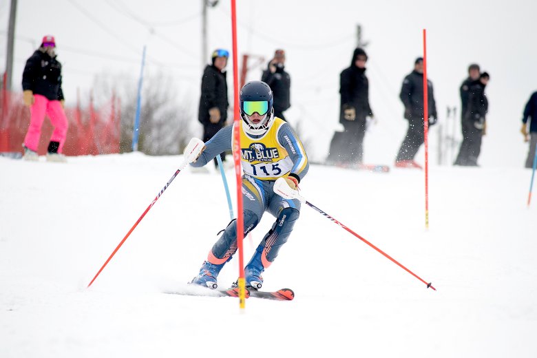 Thatcher Riley (1:25.36) won the giant slalom state title, while Tristan Riley placed fifth. Adam Ellis finished 10th and Josh Adam 11th to give the Black Bears 777 points. Cape Elizabeth is second with 753 points and Yarmouth is third with 743.