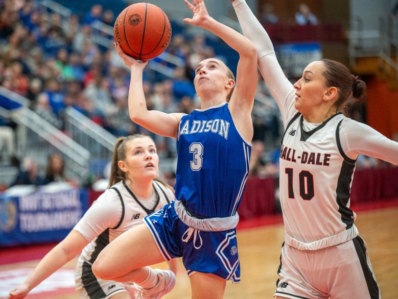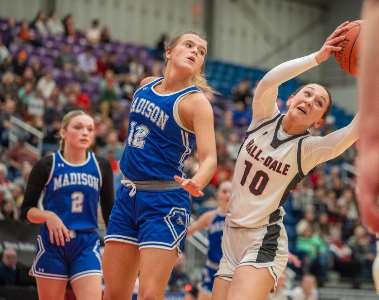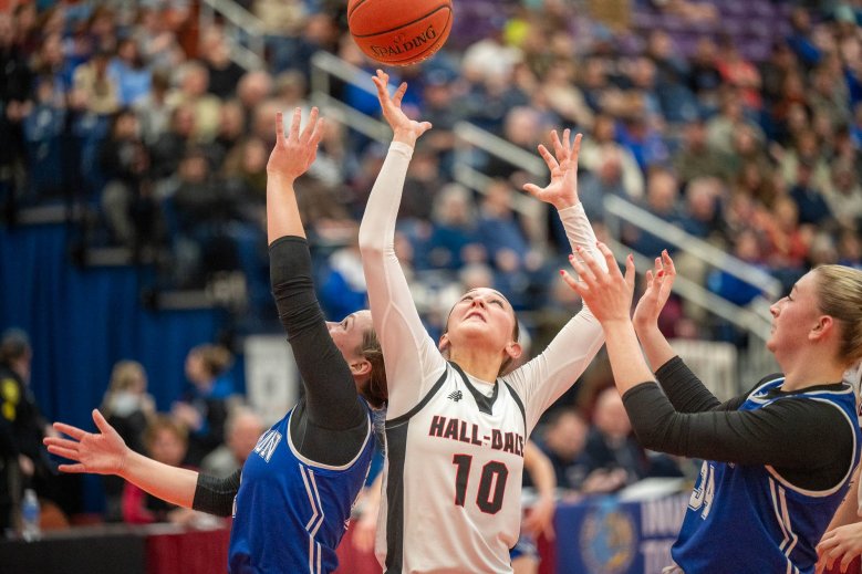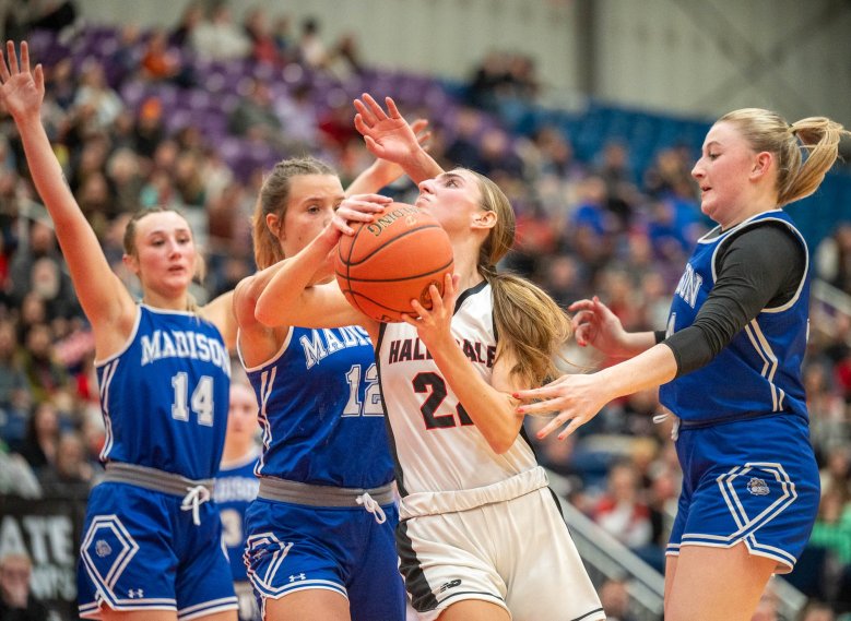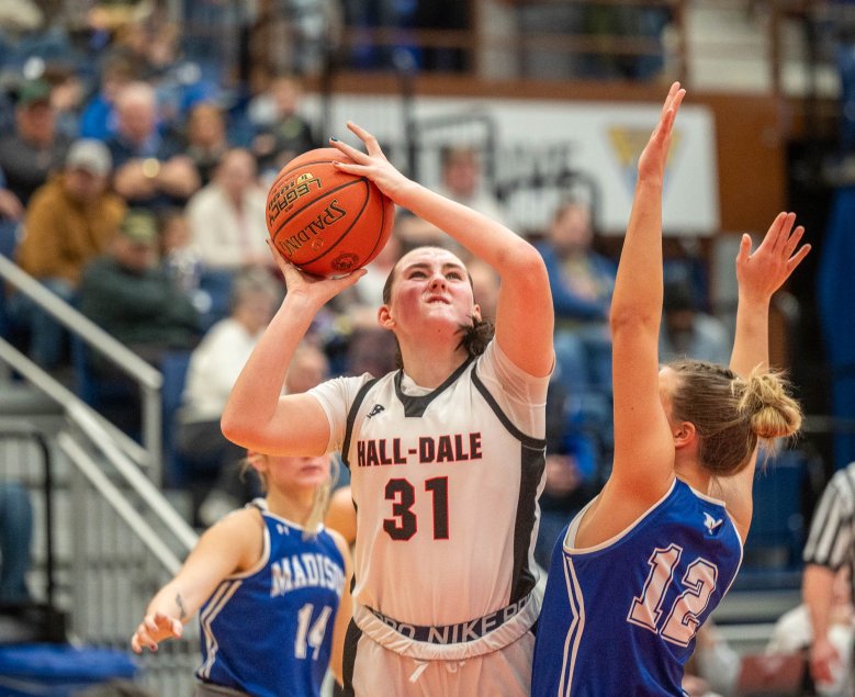 “We’re definitely going to have to adapt to playing against girls taller than us and who are just as strong,” said Hall-Dale senior guard Lucy Gray. “We’re really going to try to be more physical with our defense. … This week, our coaches have really been on us to not take any plays off, and if someone scores in our face, we just have to let it go and keep the energy up and not get down on ourselves. Keep each other up and stay positive.”