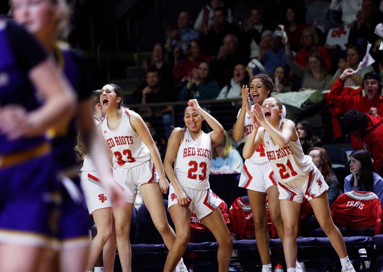 The South Portland girls basketball team didn’t need to look far for extra motivation heading into the Class AA final. All the Red Riots needed to do was look at their gym wall.