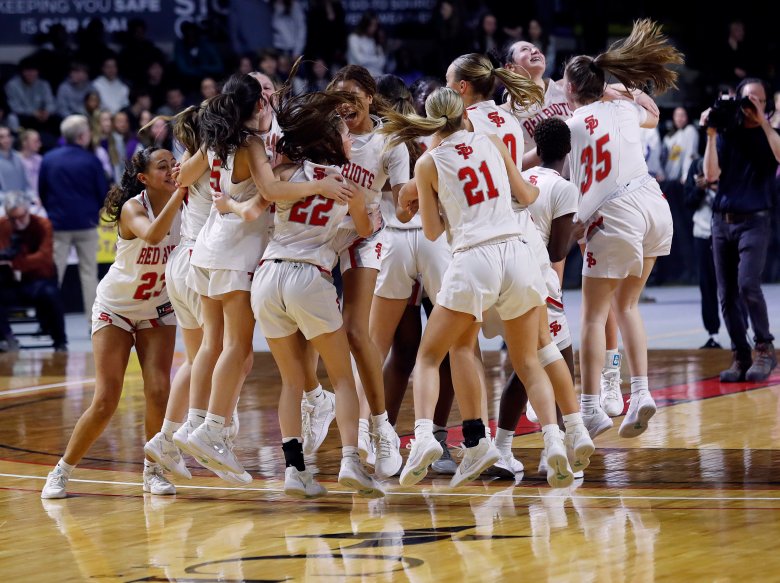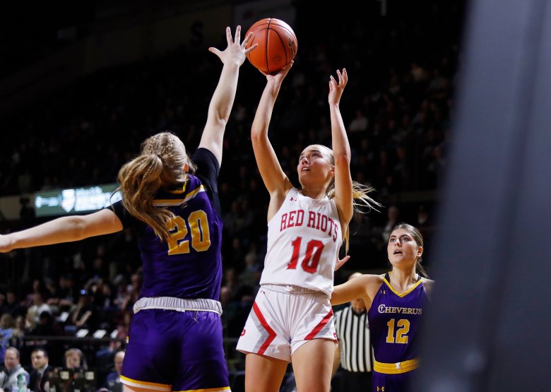 Still, Cheverus didn’t go away. After South Portland went ahead by seven midway through the second quarter, the Stags cut the gap to two by halftime. After the Red Riots took a 43-35 lead on a Whitmore 3-pointer with 7:32 to play, Cheverus responded again, with Lamson hitting a 3 and then scoring after a steal by Kelly to make it 45-42 with 5:40 to go.