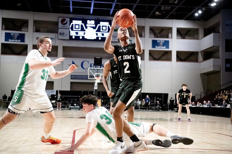 St. Dom’s then took control in the third quarter, with a mix of scoring from Tangilamesu, Yombe, Brocke and Varney. A three-point play from Yombe capped a 15-0 run that give the Saints their largest lead of the game at 31-18.