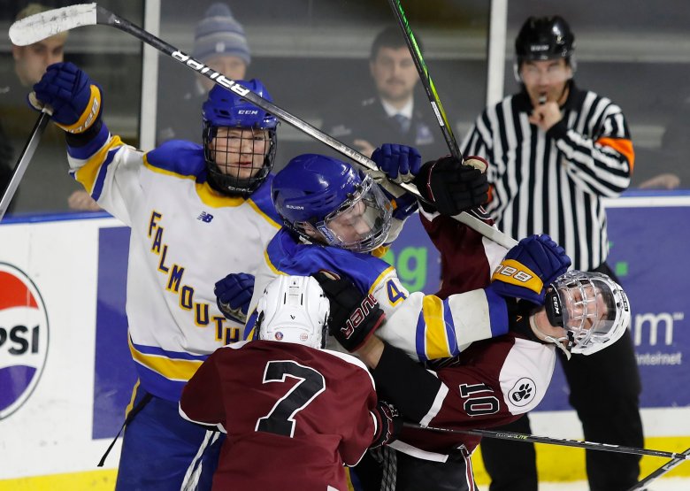 The win was the fourth in a row for the Huskies (12-7-1), who also got goals from Antoine Morin, Alex Gadbois (two assists) and Liam Ross. Included in that run was a 5-0 victory over Falmouth in the regular-season finale.