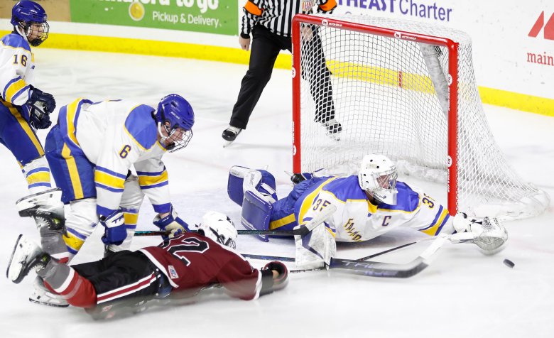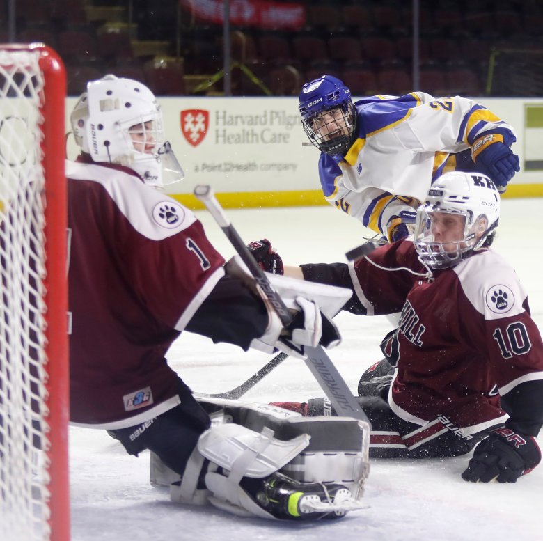 The momentum carried over into the third period, as Kents Hill upped the pressure in the opening minutes and eventually scored on Gadbois’ shot from the left side with 8:50 to go.