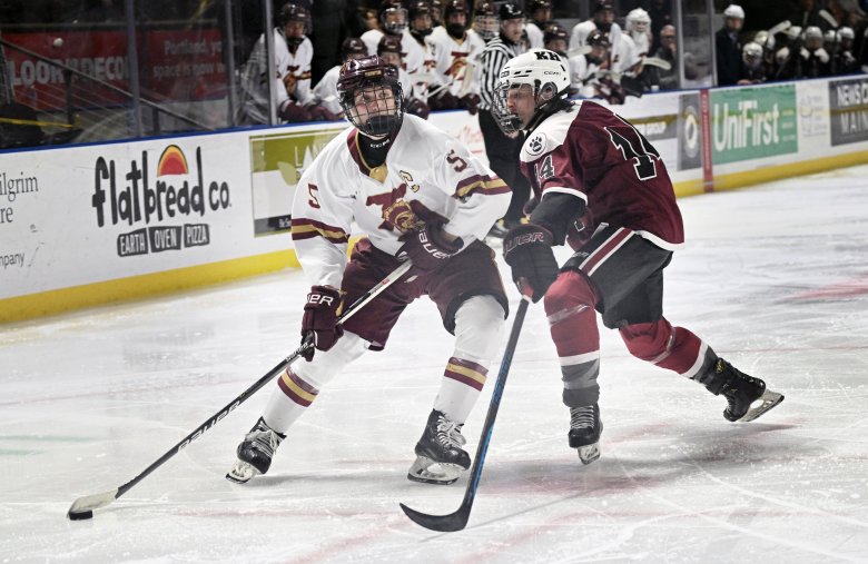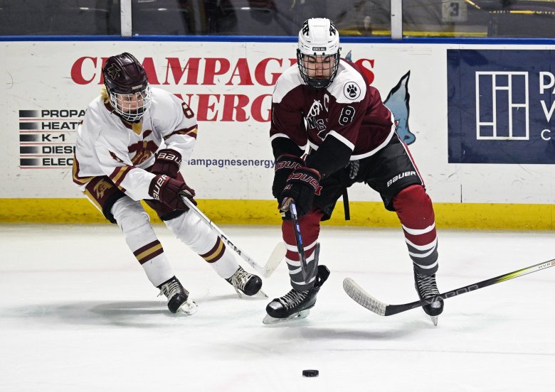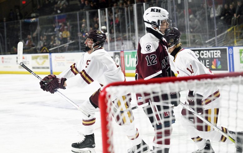 “Two power-play goals, that’s the difference right there,” said Kents Hill coach Bill Desmarais, whose team outshot Thornton 29-23. “We don’t give those up, we win. It was back and forth, it was even, but special teams made the difference today.”