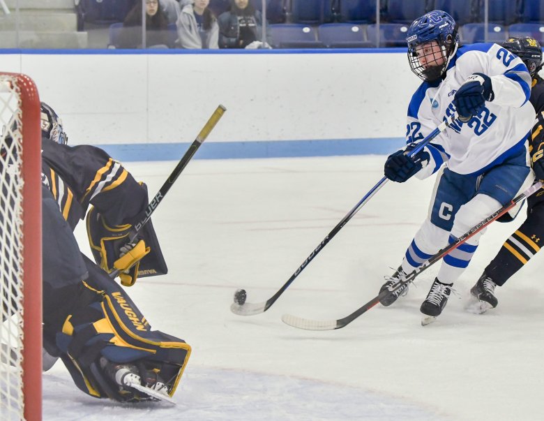 But Studley gave Colby a 2-1 lead at 15:51, shooting down the ice on a breakaway and flipping the puck over Milne’s glove.