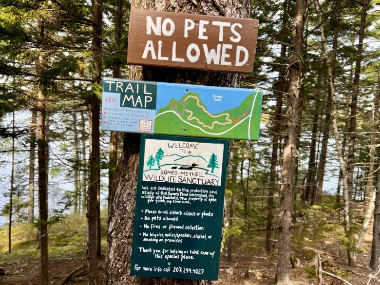 • Somes-Meynell Wildlife Sanctuary protects 255 acres in the Somes Pond watershed in and around Somesville. The pond is named for Abraham Somes, the island’s first European settler, who founded the village in 1761. A colorful, hand-painted sign greets you at the edge of the small parking area, and from there, the Nature Trail and the Spring Trail will lead you on a lovely 1-mile walk through the mossy spruce woods along the pond’s margin, including a nice view of the upper slopes of lofty Sargent Mountain. Info: www.somesmeynell.org.