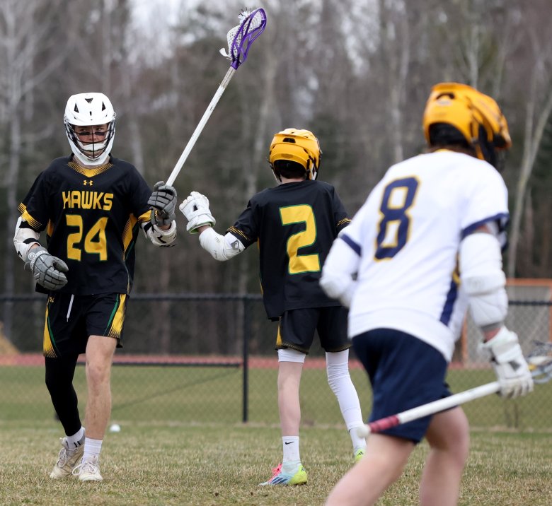• Cobey Dunn’s goal 14 seconds in began a barrage for Maranacook/Winthrop (2-0). The Hawks scored four more in the first quarter before Parker Douin’s goal 14 seconds into the second quarter gave the Hawks a 6-0 lead.